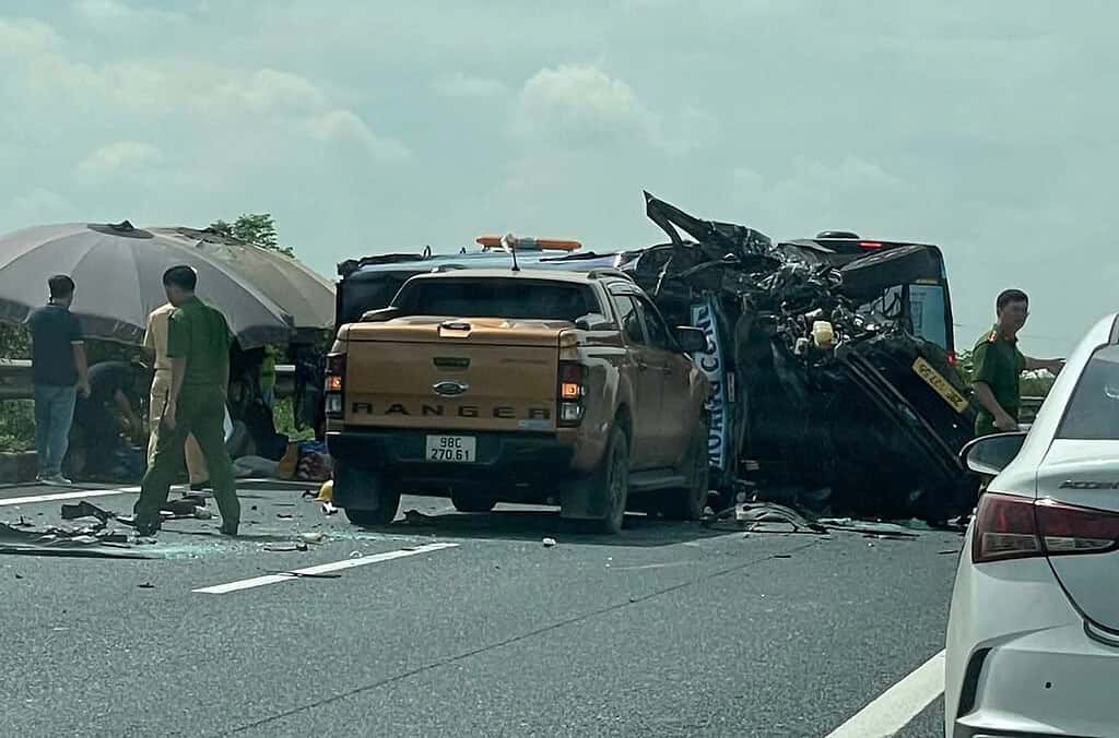 Tai nạn liên hoàn giữa 2 xe khách và xe tải trên cao tốc Cầu Giẽ – Ninh Bình khiến ít nhất 7 người bị thương, phải đưa đi cấp cứu.
