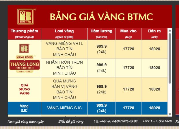 Cập nhật lúc 9:00 ngày 4/2 giá vàng trong nước, vàng nhẫn: